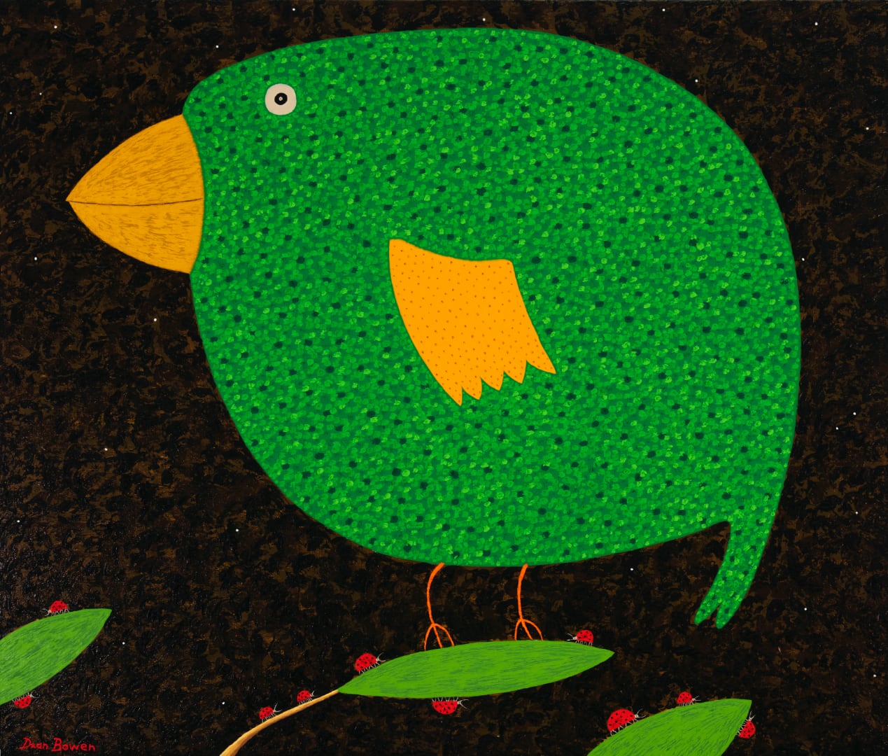 Green Leaf Bird with Ladybird Family